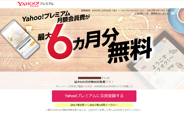 個人的にAmazonプライムとYahoo!プレミアムは元が取れる数少ない月額課金会員制度だと思っているのと、Yプレミアムは頻繁に半年無料キャンペーンを行っているのでちょくちょくチェックすると良い。