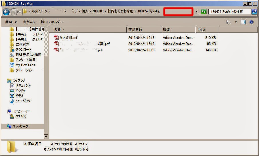 赤枠の部分をクリックすればfileserversolution個人…といった”パス”が表示される