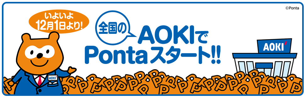 12月1日から全国のAOKIでPONTAを貯めて使えるようになる。