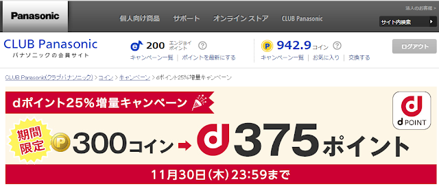 交換開始日が11/1のCLUBパナソニックとぐるなびポイントを交換した。