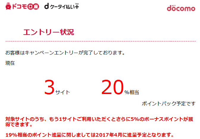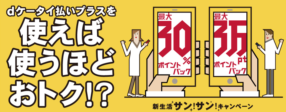 先程のdケータイ支払プラスで20%のdポイントとは別で、5サイト買い周りで29%(1%は元々付くので)アップする。(※10万円の買い物まで。4/1付与、4/30失効の期間限定ポイント)