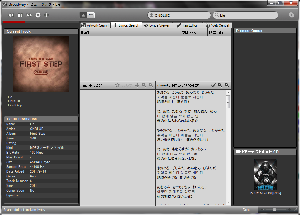 韓国のバンド[CNblue]の歌詞は出てきませんでした。