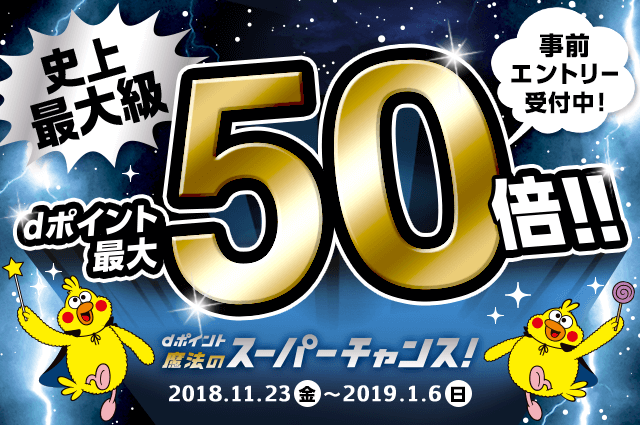 dポイントが最大50倍キャンペーン中。ただ、50倍もらうのは今まで以上にシビアで、特にドコモユーザー以外は厳しい。