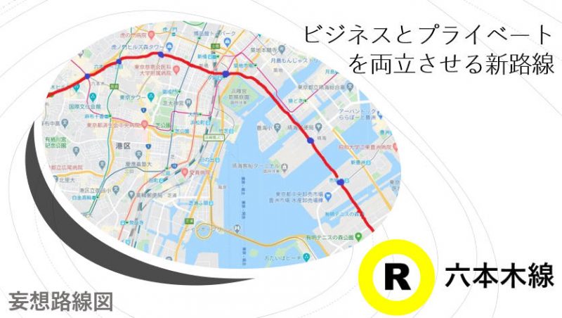 六本木線は渋谷から六本木、汐留を通って国際展示場に伸びる東京横断地下鉄線だ。