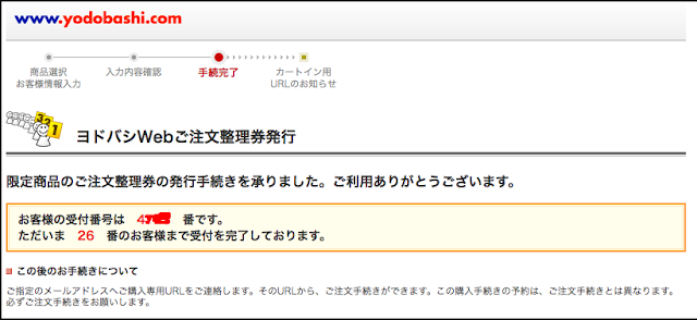 これ、まだあくまで整理券を手に入れただけで、実際の代金支払は整理券獲得順にメールが来て、そこからの導線で支払うらしい。
