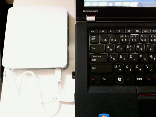 後はLANに有線LANを、USBにマウスの無線レシーバーやiPodのDocなんかを常に刺しておく。